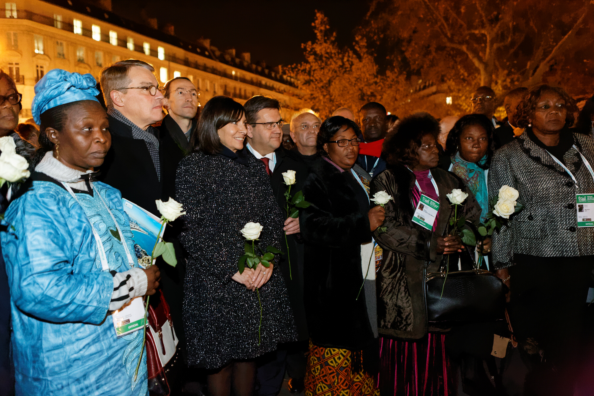 Mayors pay tribute to the victims of the Paris attacks by laying wreaths at the Memorial at La place de la République